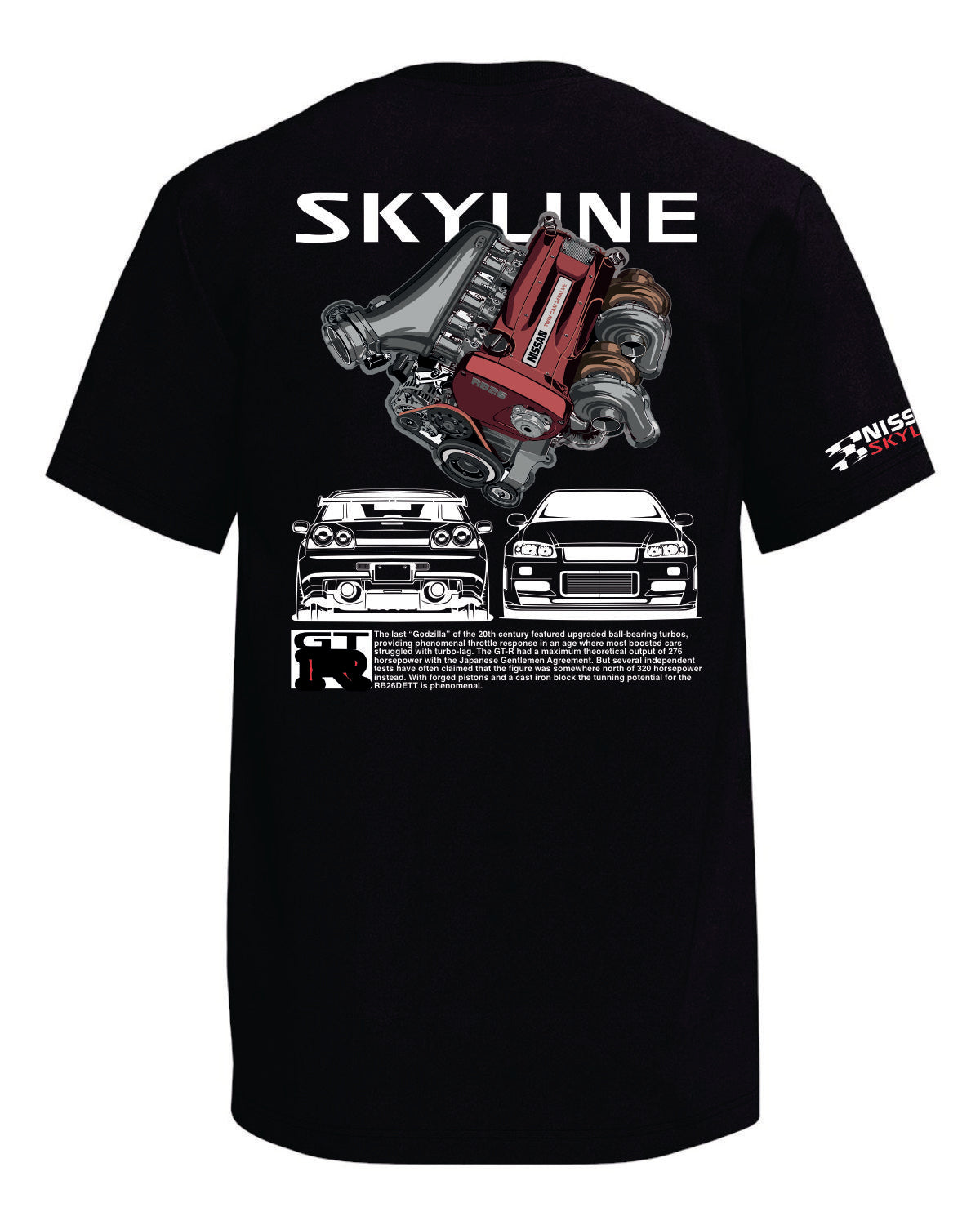 100% cotton stylish featuring "Godzilla" GTR. Great streetwear shirt to stand out from the rest.